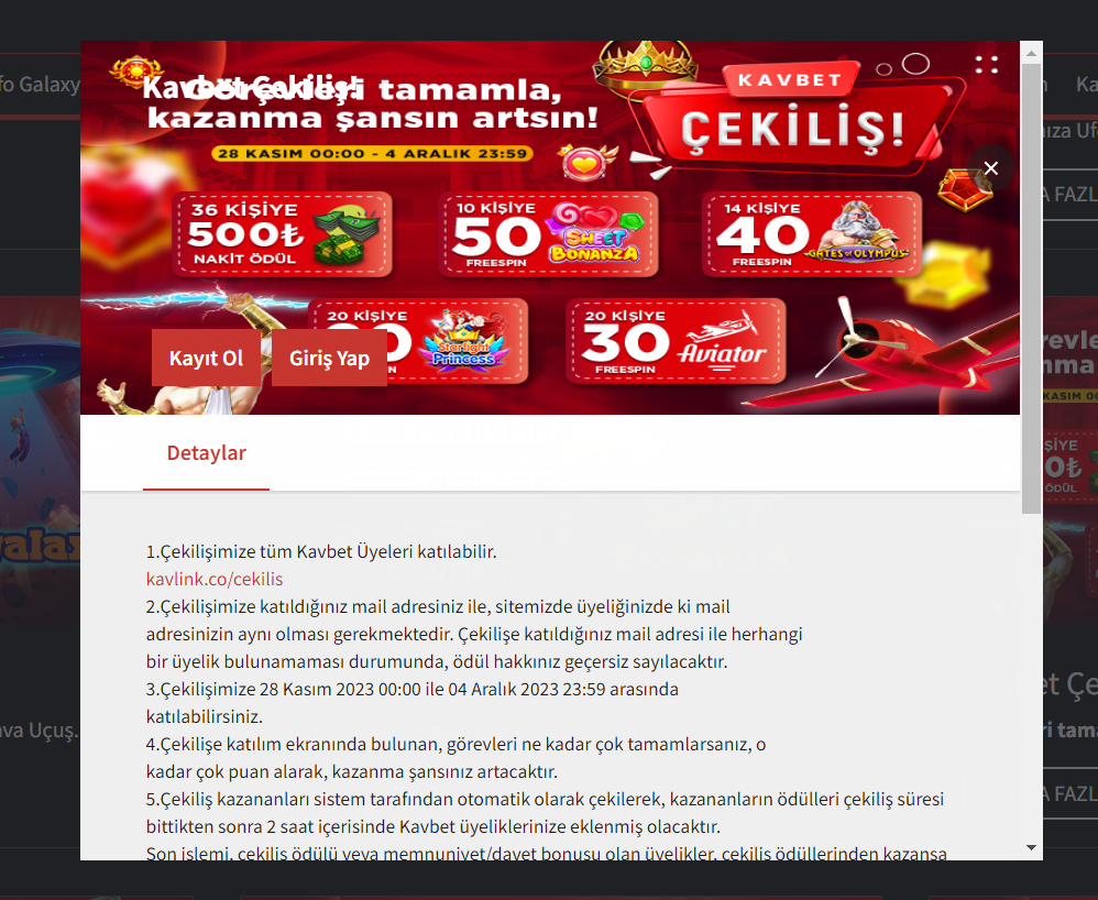 Hey! Sana harika bir haberim var. Kavbet’in heyecan verici bir çekilişi başlıyor ve bu çekilişte muhteşem ödüller seni bekliyor! Hazır ol, çünkü büyük bir fırsatın kapıları açılıyor.