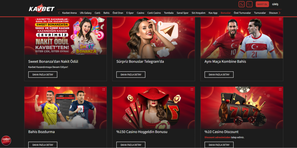 - Bonus Çeşitliliği: Kavbet yeni kullanıcılarına hoş geldin bonusu ile başlamak üzere, farklı oyunlar ve bahisler için çeşitli bonus seçenekleri sunar. Bu bonuslar, kullanıcıların siteyi denemeleri ve oyun stratejilerini geliştirmeleri için harika fırsatlar yaratır.